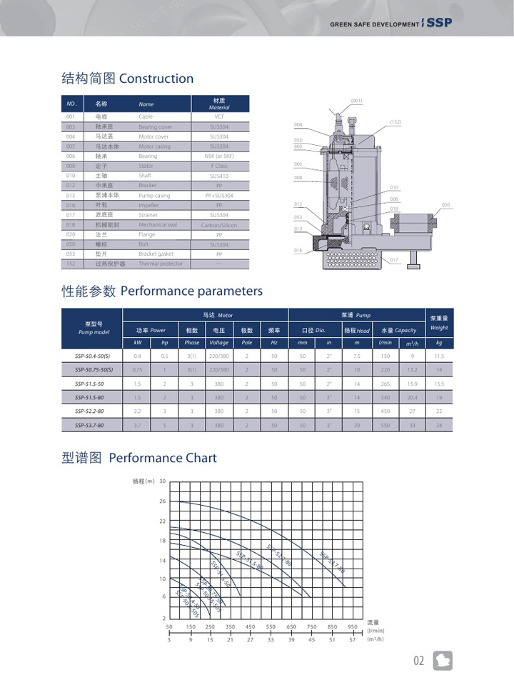 本產品流道及葉輪一體成型, 損失少、效率高, 達到節省能源功能。長期使用于一般污水中不生銹,不會產生二次污染, 符合環保要求。
