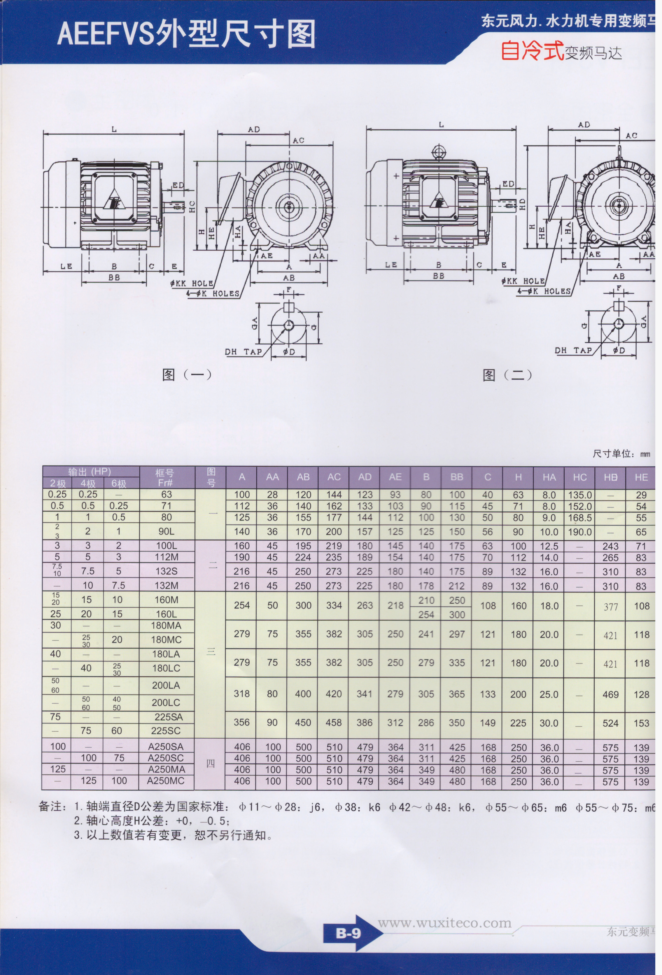 TECO東元變頻電機種類:三相鼠籠式感應電動機 保護方式:IP54:全密式 安裝方式:EVEF 水平腳座安裝(IM1001) EVVF 凸托架安裝(IM3001) 極數:4P 6P 8P 額定輸出:1/2-125 1/4-100 25-60 馬達電源:3#220,380,415,440,460V 50 or 60HZ(其他電源) 時間額定:連續額定,使用系數S.F:1.0 轉矩特性:定轉矩負載適用范圍:1:10 遞減轉矩負載適用范圍:1:20,轉矩成正比與轉平 方遞減 啟動轉矩:125%額定轉矩 絕緣等級:F級(附熱保護器---常閉型) |